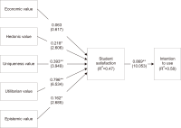The present study investigates the impact of perceived value metrics in driving satisfaction and behavioral intention to use e-resource among its users. Utilitarian, hedonic, uniqueness, epistemic, and economic are key values selected for the purpose of investigation in the study. This empirical study is carried out through a survey and responses have been analyzed using structural equation modelling. The target group is selected by means of simple random sampling (users of e-resources in selected business schools). Findings of the study reveal that utilitarian values, hedonic values, epistemic values, and uniqueness values have a significant impact on the usage intention of e-resources; however, economic values reflect an insignificant relationship to intention to use e-resources. The study is a distinctive piece of work on investigating the most and the least significant value(s) associated with satisfaction and usage intentions of e-resources.