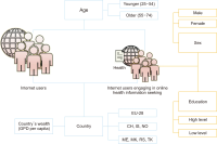 Since older people are traditionally considered disadvantaged when it comes to Internet use, it is useful to examine whether older individuals use the Internet for health information seeking (HIS). This study aims to investigate digital inequalities in terms of Internet use by older population for HIS in the European region. As methods, we applied secondary data analysis (of Eurostat data) to investigate the influence of age, educational level, sex, and countries’ wealth. Cluster analysis combined with multidimensional scaling was used to find out those countries exhibiting similarities in older people’s online HIS. The main results are: Older individuals do not equally use the Internet in general and for HIS in particular. Older Internet users with higher level of education and of the female sex are more likely to use the Internet for health information.