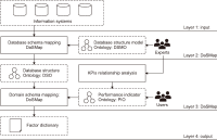Strategy monitoring is essential for business management and for administrators, including managers and executives, to build a data-driven organization. Having a tool that is able to visualize strategic data is significant for business intelligence. Unfortunately, there are gaps between business users and information technology departments or business intelligence experts that need to be filled to meet user requirements. For example, business users want to be self-reliant when using business intelligence systems, but they are too inexperienced to deal with the technical difficulties of the business intelligence systems. This research aims to create an automatic matching framework between the key performance indicators (KPI) formula and the data in database systems, based on ontology concepts, in the case study of Prince of Songkla University. The mapping data schema with ontology (MapDSOnto) framework is created through knowledge adaptation from the literature review and is evaluated using sample data from the case study. String similarity methods are compared to find the best fit for this framework. The research results reveal that the “fuzz.token_set_ratio” method is suitable for this study, with a 91.50 similarity score. The two main algorithms, database schema mapping and domain schema mapping, present the process of the MapDS-Onto framework using the “fuzz.token_set_ratio” method and database structure ontology to match the correct data of each factor in the KPI formula. The MapDS-Onto framework contributes to increasing self-reliance by reducing the amount of database knowledge that business users need to use semantic business intelligence.