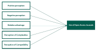 This article investigates perceptions and use of Open Access journals (OAJs) by master’s degree students in two universities in the southwestern part of Nigeria. A descriptive survey design was used in the study and the study population was comprised of 7,423 master’s degree students in the University of Ibadan and 1,867 from Obafemi Awolowo University. A multistage random sampling technique was used to select a sample size of 249 and the data collection instrument was a structured questionnaire. Data were analyzed using frequency counts, percentages, mean, standard deviation, correlation, and regression analyses. The findings revealed that OAJs were used for learning, dissertation writing, personal research, and development. OAJs were not frequently used because of download delays, unavailability of Internet facilities, and limited access to computers terminals, among other issues. OAJs were found to be of relative advantage, positively perceived, and found to be compatible with existing values and quality assurance in scholarly publications, hence their use for academic activities. The regression analyses showed that there was a significant positive relationship between positive perception, perception of relative advantage, perception of compatibility, perception complexity, and master’s degree students’ use of OAJs. Negative perception was found to have a significant negative correlation with the use of OAJs. This article recommends that quality assurance of OAJs should be ensured in order to boost users’ positive perceptions to increase their patronage and usage of these scholarly outlets for various academic activities, which will in turn encourage research and development across the various institutions of higher learning in Nigeria.