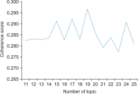 This study aims to identify specific topics, trends, and structural characteristics of scholarly communication research, based on 1,435 articles published from 1970 to 2018 in the Scopus database through Latent Dirichlet Allocation topic modeling, serial analysis, and network analysis. Topic modeling, time series analysis, and network analysis were used to analyze specific topics, trends, and structures, respectively. The results were summarized into three sets as follows. First, the specific topics of scholarly communication research were nineteen in number, including research resource management and research data, and their research proportion is even. Second, as a result of the time series analysis, there are three upward trending topics: Topic 6: Open Access Publishing, Topic 7: Green Open Access, Topic 19: Informal Communication, and two downward trending topics: Topic 11: Researcher Network and Topic 12: Electronic Journal . Third, the network analysis results indicated that high mean profile association topics were related to the institution, and topics with high triangle betweenness centrality, such as Topic 14: Research Resource Management, shared the citation context. Also, through cluster analysis using parallel nearest neighbor clustering, six clusters connected with different concepts were identified.