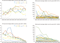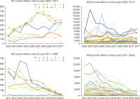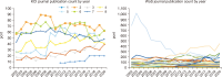 The study analyzed bibliometric data of papers published in Korea Citation Index (KCI) and Web of Science (WoS) journals from 2002 to 2021. After examining size differences of KCI and WoS domains in the number of authors, institutions, and journals to put publication and citations counts in perspective, the study investigated co-authorship patterns over time to compare collaboration trends of Korean and international scholars and analyzed the data at author, institution, and journal levels to explore how the influences of authors, institutions, and journals on research output differ across domains. The study also conducted frequency-based analysis of keywords to identify key topics and visualized keyword clusters to examine topic trends. The result showed Korean LIS authors to be twice as productive as international authors but much less impactful and Korean institutions to be at comparable levels of productivity and impact in contrast to much of productivity and impact concentrated in top international institutions. Citations to journals exhibited initially increasing pattern followed by a decreasing trend though WoS journals showed far more variance than KCI journals. Co-authorship trends were much more pronounced among international publication, where larger collaboration groups suggested multi-disciplinary and complex nature of international LIS research. Keyword analysis found continuing diversification of topics in international research compared to relatively static topic trend in Korea. Keyword visualization showed WoS keyword clusters to be much denser and diverse than KCI clusters. In addition, key keyword clusters of WoS were quite different from each other unlike KCI clusters which were similar.