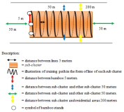 Sanankerto is one of pilot projects for tourism villages in Indonesia due to its natural tourism potential with a 24-ha bamboo forest located in Boon Pring Andeman area. However, the distribution of existing bamboo has never been identified or mapped. Thus, the management is facing difficulty in planning and developing tourism potential as well as spatial management in the area. Therefore, the objectives of this study were to identify and analyze the structure of bamboo vegetation in the Boon Pring Tourism village and to perform vegetation mapping. The type of research was descriptive exploratory with a cluster sampling technique (i.e., a two-stage cluster) covering an area of ± 10 ha. Bamboo vegetation analysis was performed by calculating diversity index (H’), evenness index (E), and Species Richness index (R). Data were collected through observation and interviews with local people and the manager to determine zonation division. Mapping of bamboo vegetation based on zoning was processed into thematic maps using ArcGis 10.3. Micro climatic factors were measured with three replications for each sub-cluster. Data were analyzed descriptively and quantitatively. Nine species of bamboo identified. Diversity, evenness, and species richness indices differed at each location. Activities of local communities, tourists, and manager determined the presence, number, and distribution of bamboo species. These bamboo distribution maps in three zoning (utilization, buffer, and core) can be used by manager for planning and developing natural tourism potential.