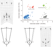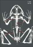 The trade-off between morphology and physical function may vary according to ecological traits. Taking a quantitative approach, we attempted to analyze the differences in the skeletal shape of the lower body and limbs in relation to the ecological traits of four anuran species (Dryophytes japonicas, Glandirana rugose, Pelophylax nigromaculatus, and Lithobates catesbeianus) occurring in South Korea. Body size, locomotor mode, microhabitat, trophic positions, and predator defense mechanisms were selected for the ecological traits of the anurans. The pelvis, ilium, and urostyle, which are associated with locomotor performance, were selected for the skeletal shape of the lower body. The ratio of limbs, which is related to locomotor mode and microhabitat, was confirmed by analyzing the skeletons of the forelimbs (radio-ulnar and humerus) and hindlimbs (femur and tibiofibular). Both landmark-based geometric morphometrics and traditional methods were used for skeletal shape comparison. The skeletal shape of the lower body was completely different among the four species, whereas the ratio of the limbs was only different in D. japonicas. The skeletal shape of the lower body may be related to body mass and predator defense mechanisms, whereas the ratio of the limbs was related to the locomotor mode and microhabitat. Quantifying these morphological differences among various species can help elucidate the mechanisms of behavioral and morphological changes in response to ecological effects.