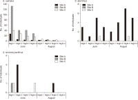 In this study, we aimed to quantify the population size and spatial distribution of three predatory Scarites species in coastal sand dunes. In June and August 2014, 252 pitfall traps were utilized to conduct a trapping web analysis at three distinct sites with varying vegetation dominance values. Scarites sulcatus had the largest estimated population in a 10 m2 area with a habitat density of 36.6 in a Vitex rotundifolia community area (site B) in the June survey. In contrast, Scarites aterrimus had the largest population size with a habitat density of 2.9 in a Calystegia soldanella community area (site A) in the August survey. Spatial distribution analysis revealed that S. sulcatus dominated the Vitex rotundifolia community without preference for a particular site, whereas S. aterrimus and Scarites terricola pacificus were primarily observed on the beach. The results indicated that the three Scarites species in the Sohwang coastal sand dune region exhibited differences in their spatial and temporal distributions in the coastal dune ecosystem in order to avoid competition and predation. In conclusion, our findings can be utilized to estimate the population density of the genus Scarites on the Korean Peninsula. The outcomes of this study will contribute to estimating insect population densities on the Korean Peninsula and developing investigative assessment methodologies.