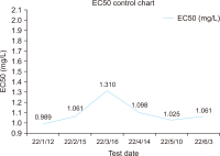 Phthalates are animal carcinogens. Potassium hydrogen phthalate (KHP), which has the least complicated structure among phthalates, is used for the analysis of total organic carbon and formaldehyde. However, its toxicity has not been confirmed. A 24-hour acute toxicity test was performed using Daphnia magna, a water flea used to evaluate aquatic toxicity owing to its high sensitivity. The lowest observed effect concentration of KHP was found to be 240 mg/L. The effects of phosphorus, nitrogen, and Cr(6+), which are able to be discharged along with KHP, were also confirmed using tests. At 240 mg/L KHP, toxicity increased as phosphorus, nitrogen, and Cr(6+) increased. In addition, tests were performed to confirm the half maximal effective concentration of KHP. Through 10 test repetitions, the average ecotoxicity value was found to be 0.3, the average half maximal effective concentration was 327.75 mg/L, and the coefficient of variation (%) was 3.16%; because the latter value is lower than 25%, which is what is generally suggested for the water pollution standard method, the reproducibility of the tests is sufficient to replace the existing standard reference toxicity test that uses potassium dichromate. In addition, the half maximum effective concentration of potassium hydrogen phthalate is approximately 218 times more than that of potassium dichromate; therefore, toxicity is relatively low. In conclusion, KHP is a feasible alternative to the highly toxic potassium dichromate for performing the standard reference toxicity test.