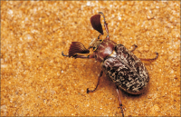 Polyphylla laticollis manchurica Semenov, 1900, is a critically endangered species in the Republic of Korea and is strictly protected as a Class I endangered species. Although this beetle species faces a threat of extinction, its ecological understanding is limited. Previous studies conducted on this species in the Republic of Korea have focused only on its taxonomy and mitochondrial genome sequences. Herein, we report an observation of the mating of adults of P. l. manchurica in June 2021, during an ongoing study on Korean beetles. This incidence was reported around light sources from newly constructed townhouses near Geumgang River. Larval habitats were observed along the river between April 2022 and March 2023. Particularly, two larvae were found inside the plant debris, and three were found under the roots of reeds. This study provides key information on the mating ecology of P. l. manchurica that can assist conservation efforts of this critically endangered species.