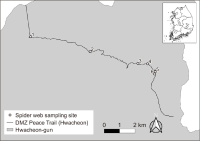 The Civilian Control Zone (CCZ) in South Korea is a highly restricted area with significant ecological value due to limited human access. This study explores the feasibility of non-invasive biodiversity monitoring using spider webs as environmental DNA (eDNA) collectors in the CCZ, particularly where traditional field surveys are constrained. A total of six spider webs were collected along the DMZ Peace Trail in Hwacheon-gun, Gangwon province, and subjected to eDNA metabarcoding using vertebrate-specific primers. Despite quality limitations in Q20 and Q30 scores, over two million reads were generated, and 531,429 high-quality reads were retained after filtering with the DADA2 pipeline. Taxonomic assignment using BLAST identified 13 vertebrate species, including nine mammals, two amphibians, and two birds. Comparative analysis with conventional field surveys revealed limited species overlap, but spider web eDNA successfully detected cryptic or rarely observed species, such as Rattus norvegicus and Felis catus. These findings suggest that spider web-derived eDNA offers potential as a complementary tool, especially in areas where direct observation is difficult or impossible due to safety or security concerns. However, incomplete reference databases and low detection efficiency highlight the need for improvements in sampling methods and local DNA libraries. This study presents a promising step toward developing alternative, non-invasive ecological monitoring techniques applicable to inaccessible terrestrial environments.
